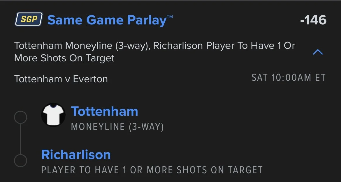 Tottenham ML/Richarlison 1+ shot on goal (-146)