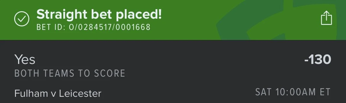 This was a very surprising pick, even for me. We all know Leisters ability to score but betting on Fulham to find the back of the net is always a struggle.