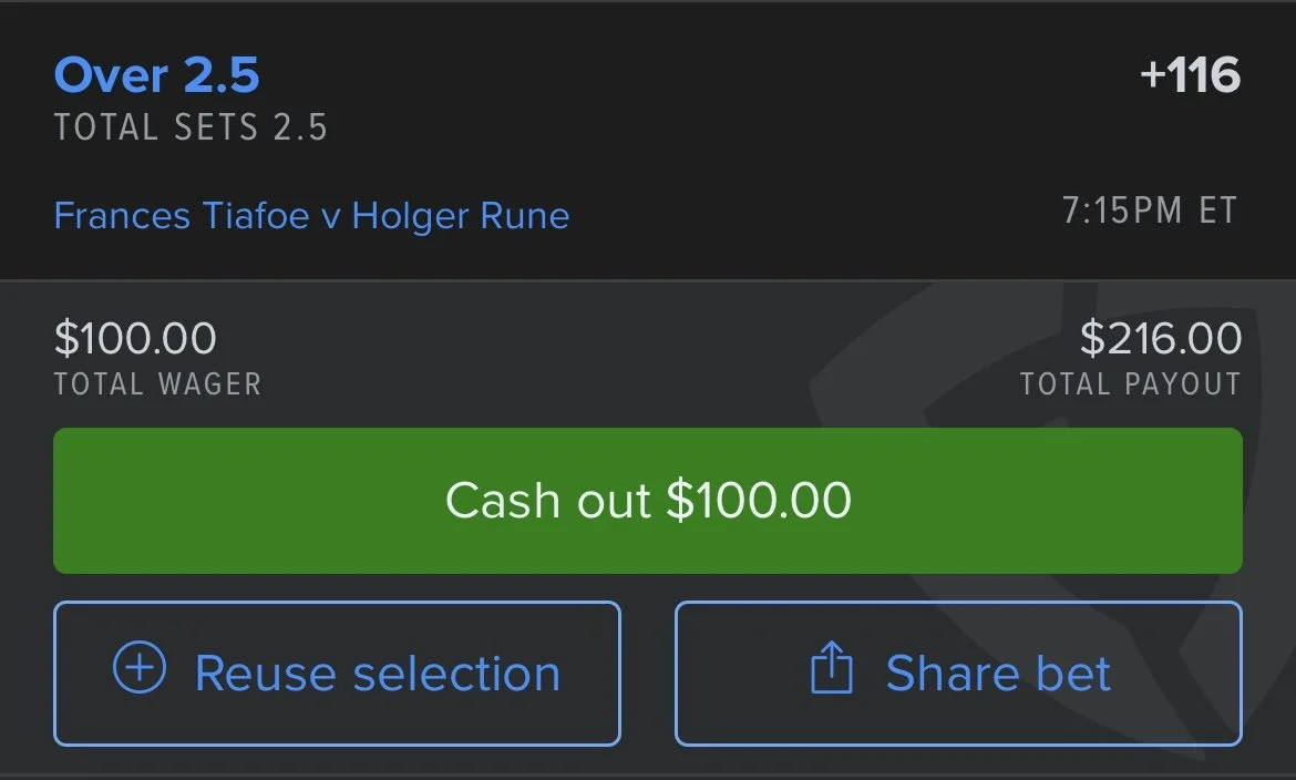 Always difficult backing both players to win a set in a best of three format, hence the plus money odds but that is exactly what I am doing. Regardless of what the odds say I think this will be a closer match than some think, many are thinking that Rune will win this thing in two sets. While that may be true because he is the better player, Tiafoe is no slouch and has showed it the past week.