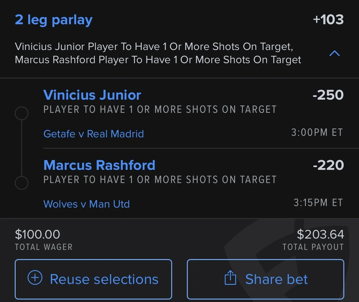 Vini Jr & Marcus Rashford 1+ shot on goal (+103)